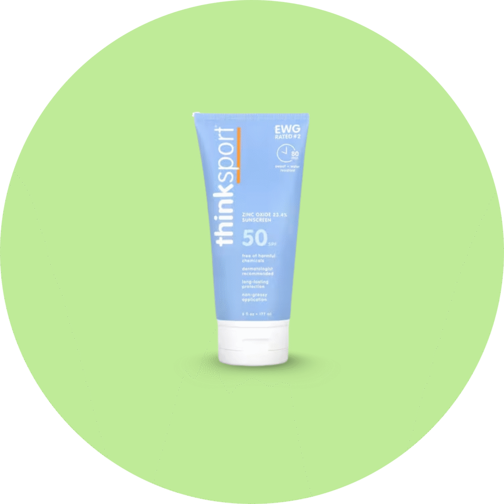 Thinksport’s SPF 50 Sunscreen is a top-rated mineral-based sunblock that delivers serious protection for active lifestyles. Earning an impressive EWG rating of #2, this sunscreen is packed with non-nano Zinc Oxide—a physical UV blocker that provides broad-spectrum protection without absorbing into the skin.